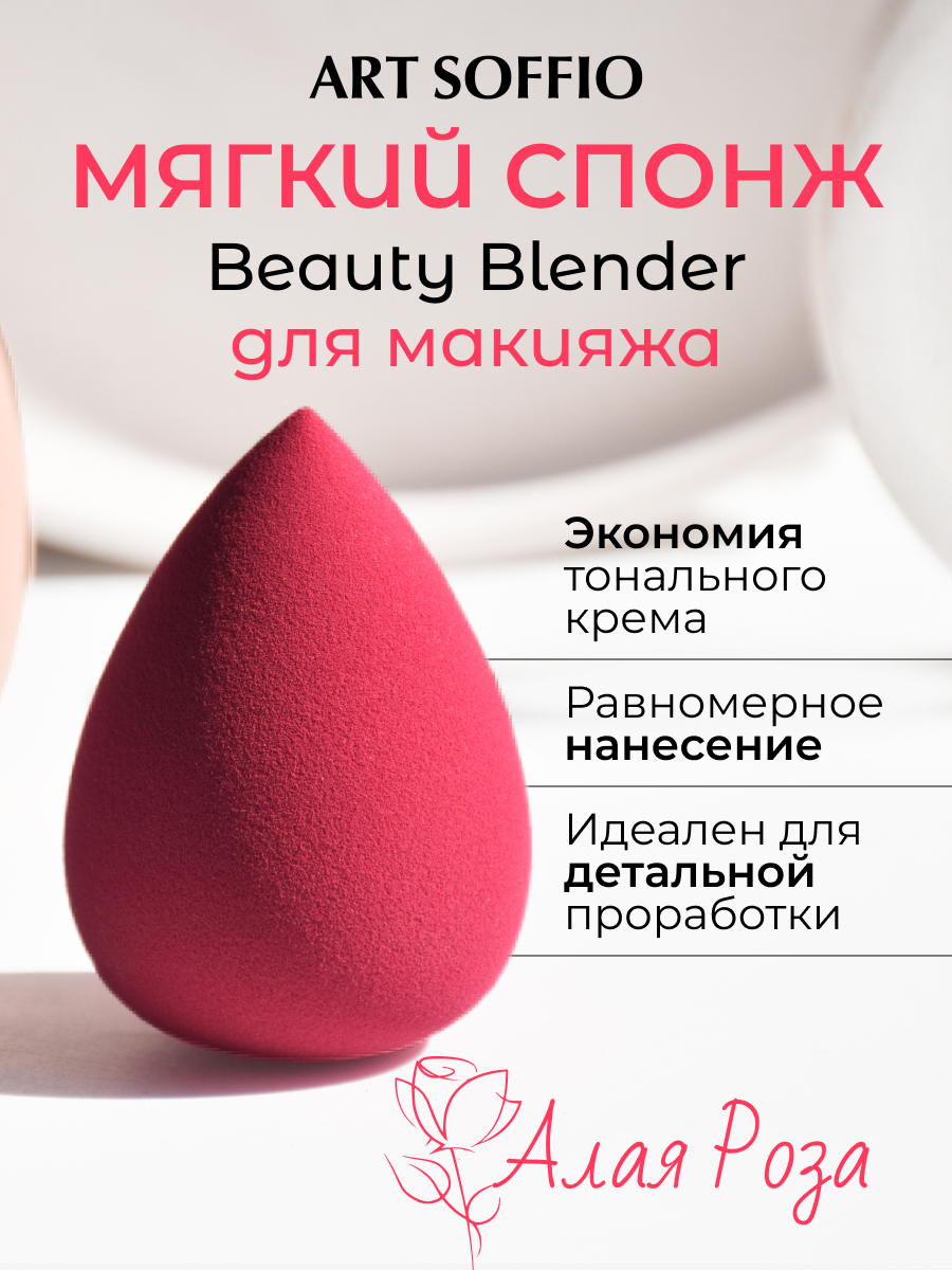 BEAUTY BLENDER АЛАЯ РОЗА от ART SOFFIO сделает ваш макияж максимально качественным и равномерным!