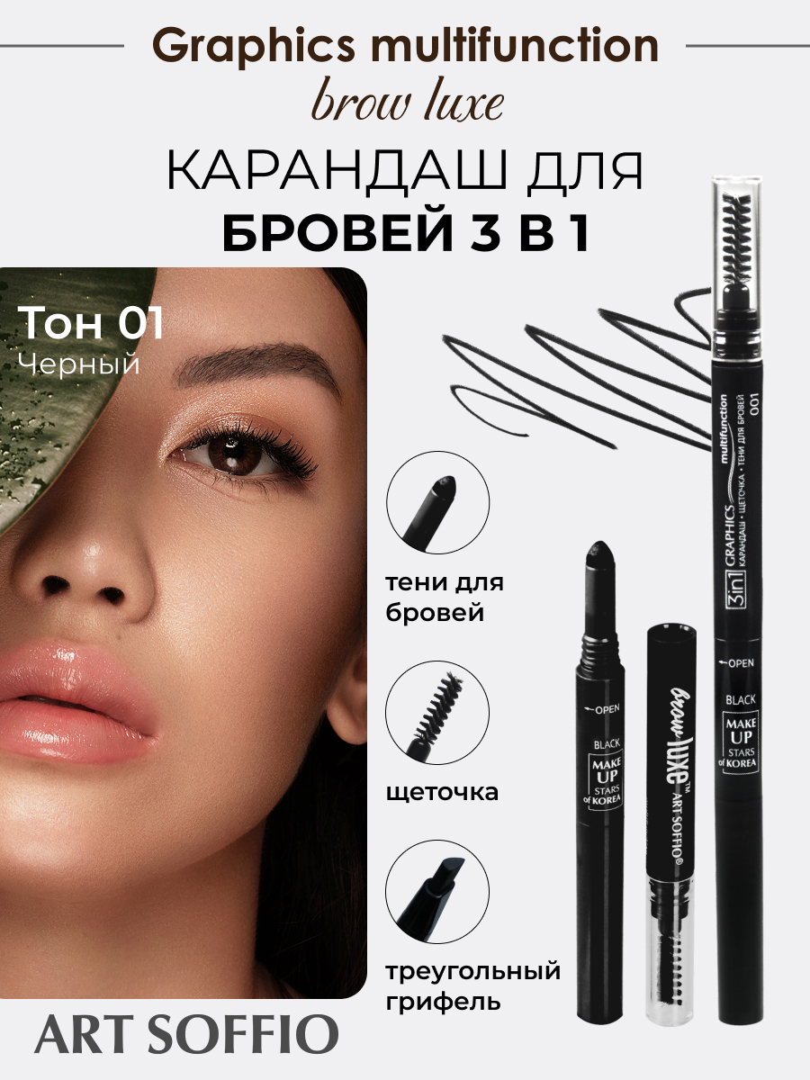 Карандаш для бровей 3в1 ART SOFFIO BROW LUXE Черный