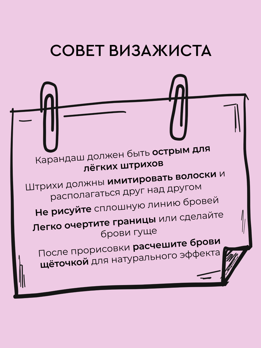 СОСТАВ текстуры этой серии карандаша для бровей специально спроектирован таким образом, чтобы тон при нанесении был максимально близким к естественному цвету волосков бровей.