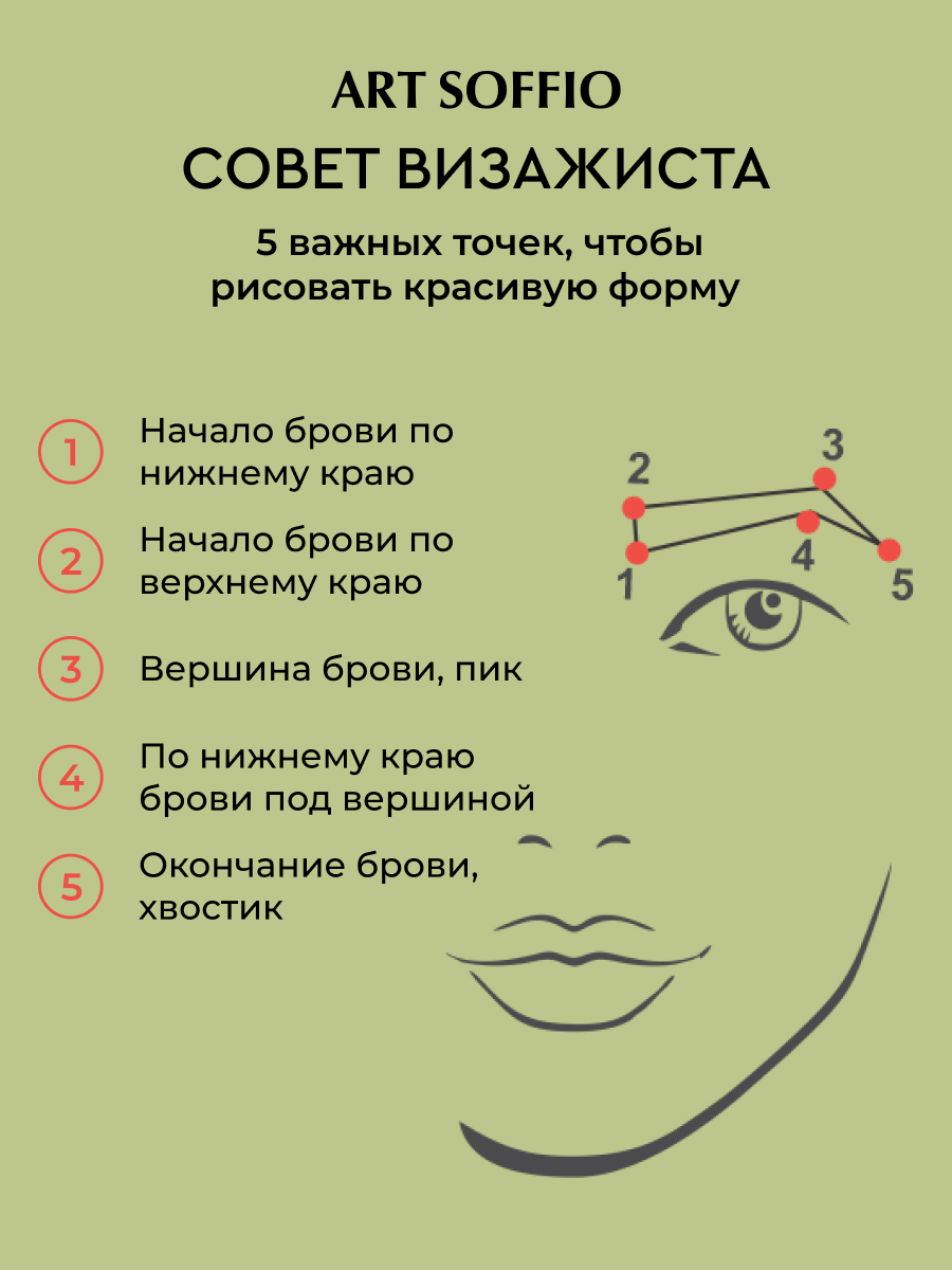 Состав стержня специально разработан так, чтобы легкими и короткими штрихами подчеркнуть бровь, начиная с самой высокой точки дуги к краям, при этом выводя общий необходимый контраст.