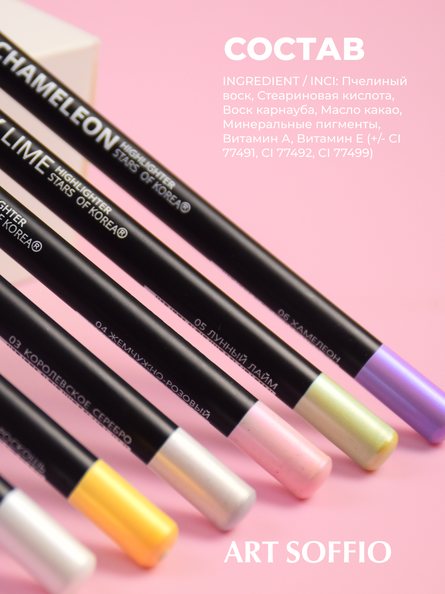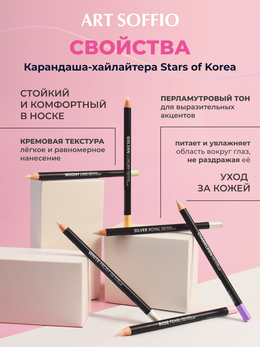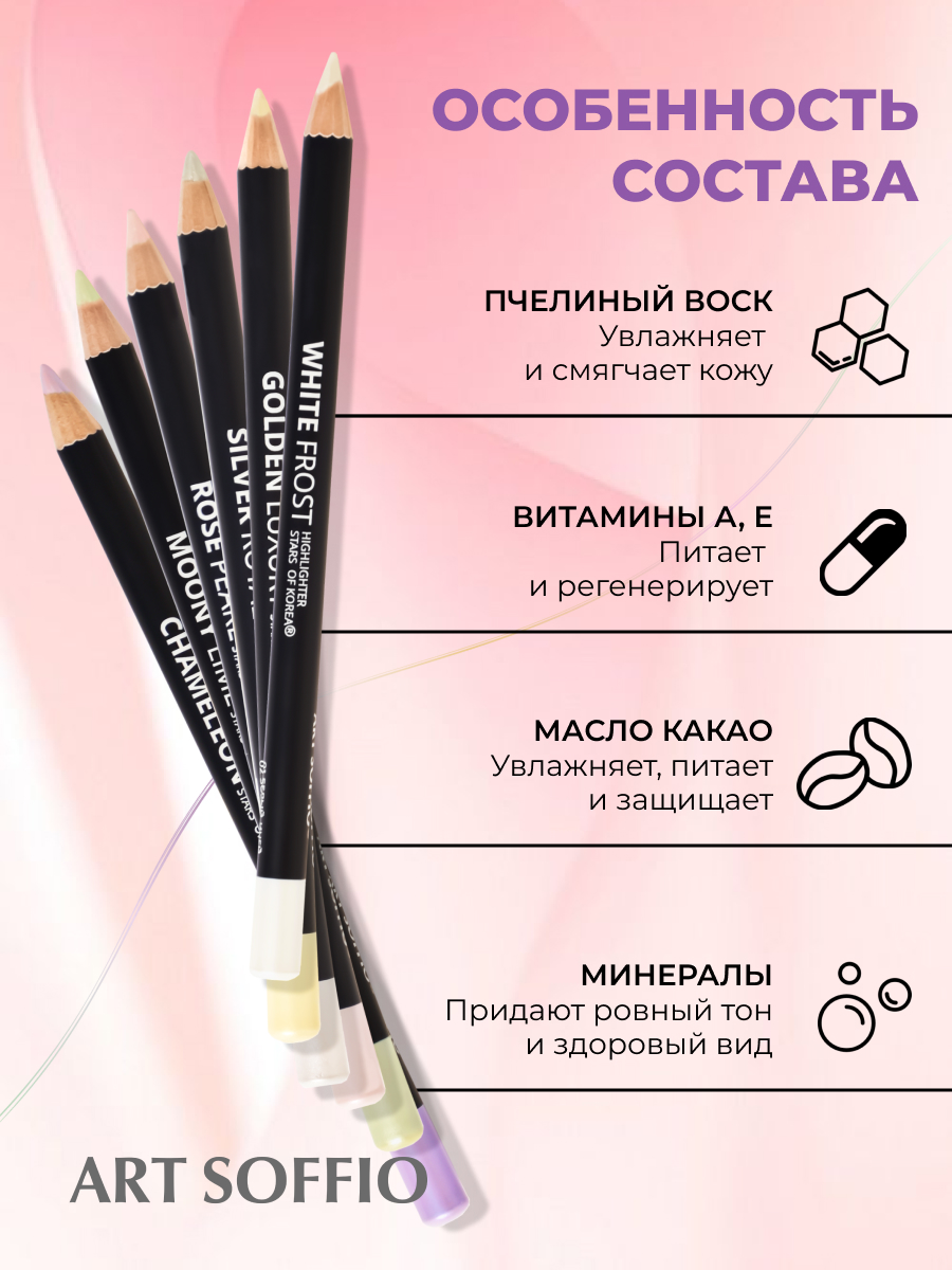 Art SoffioStars of Korea карандаш-хайлайтер –это перламутровая магия для создания нежного жемчужного перелива в макияже