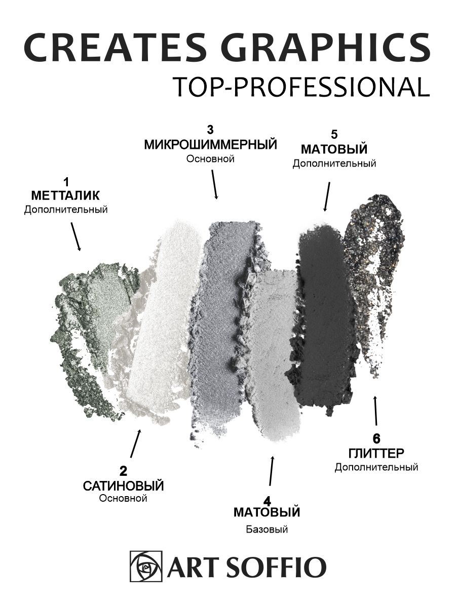 ПАЛЕТКА ТЕНЕЙ ART SOFFIO CREATS GRAPHICS 02 PLATINE DE LUXE • Роскошная Платина — истинное искусство сияния, которое создано для тех, кто хочет блистать, оставаться в центре внимания и подчеркивать свою индивидуальность.