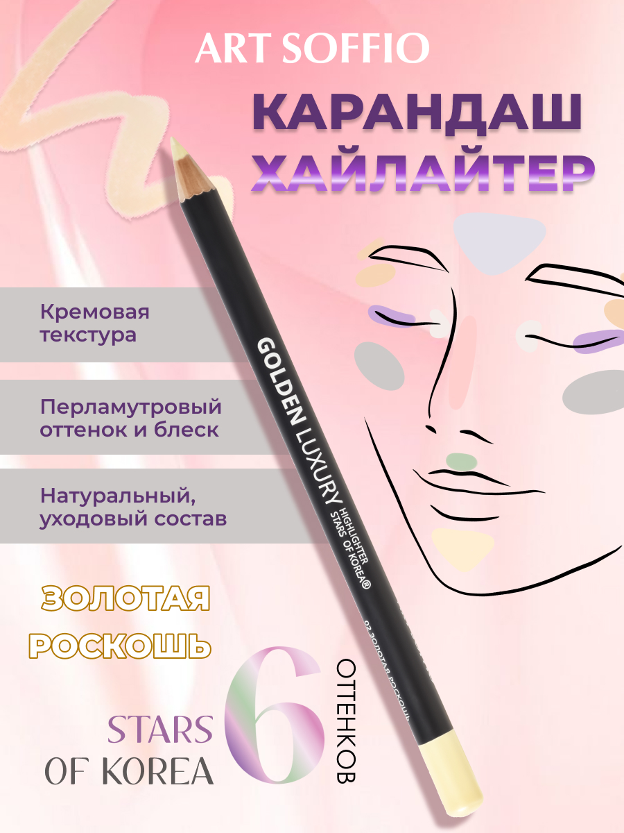 Art SoffioStars of Korea карандаш-хайлайтер –это перламутровая магия для создания нежного жемчужного перелива в макияже