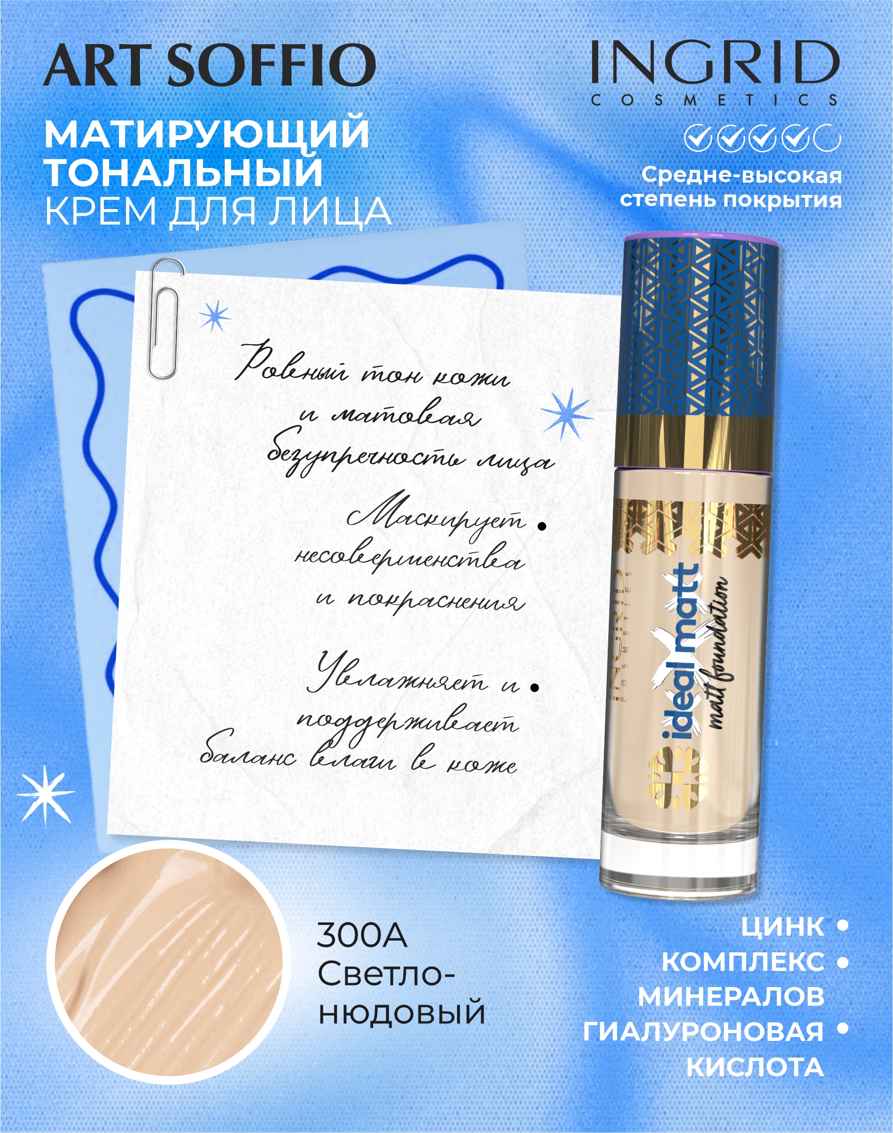 МАТИРУЮЩЕЕ ТОНАЛЬНОЕ СРЕДСТВО INGRID IDEAL MATT – подарит идеально ровный тон кожи и матовую безупречность лица.