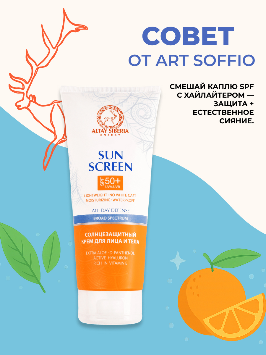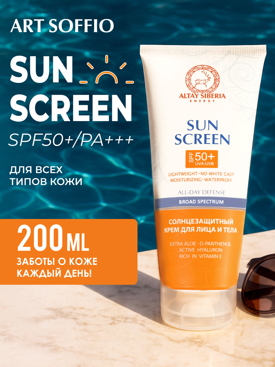 Солнцезащитный крем для лица и тела ART SOFFIO Altay Siberia с SPF-50+, 200ml