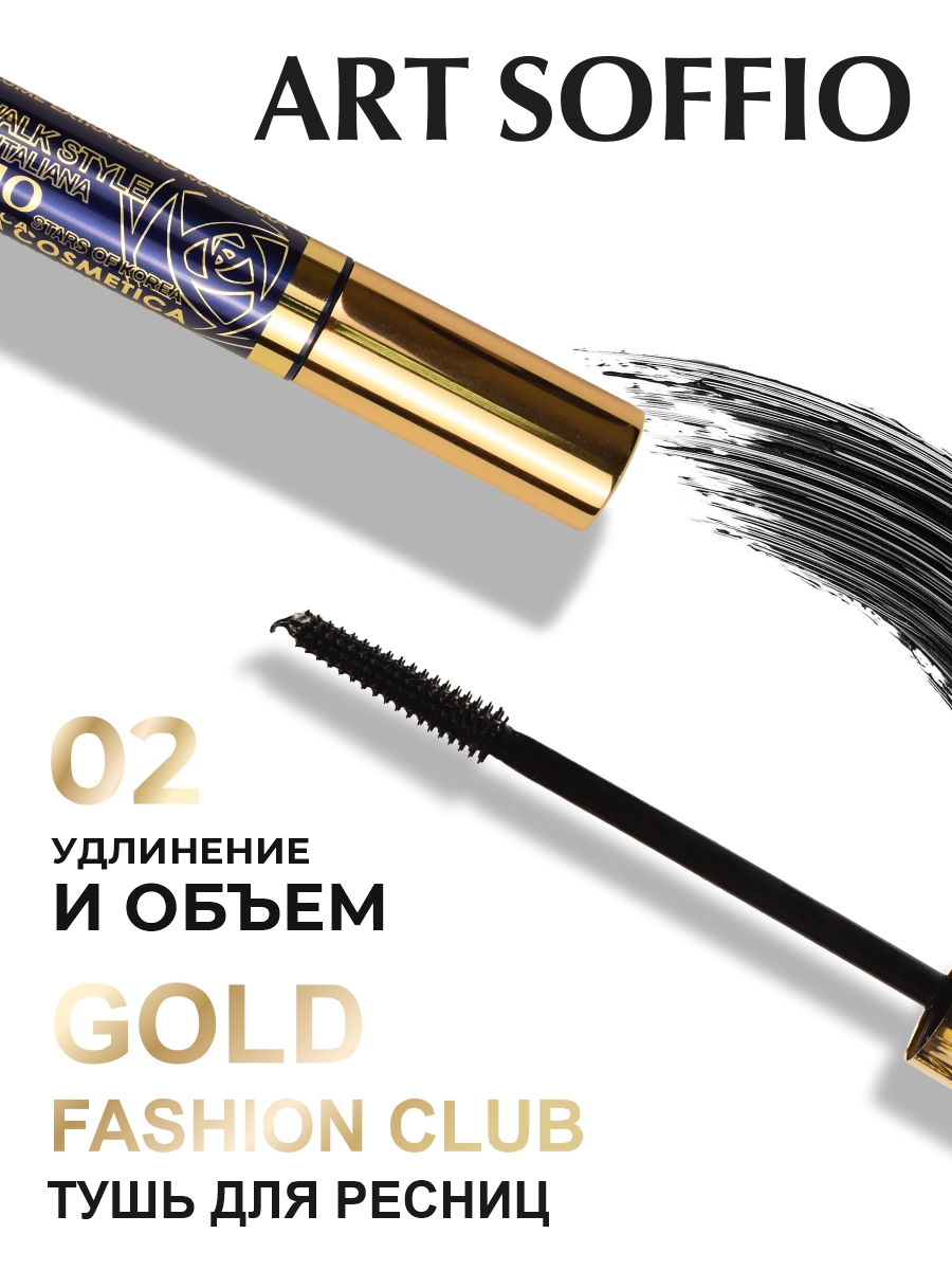 ART SOFFIO FASHION CLUB GOLD тушь для ресниц - это инновационная, УЛЬТРА-современная текстура 3 в 1: максимальное удлинение, объем и закручивание.